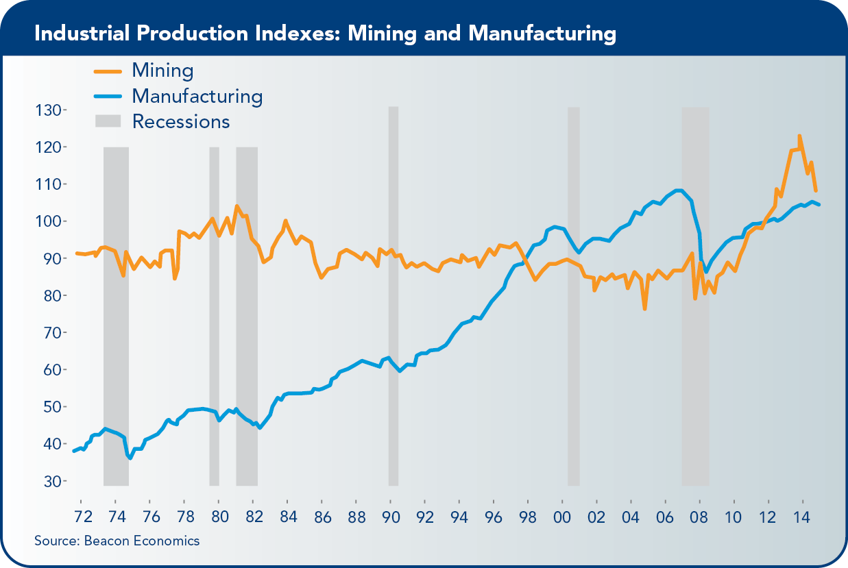 As for mining itself, the sector represents less than 2% of the U.S. economy and less than one-half a percent of employment. This can cause turmoil in some areas, but simply isn’t broad-based enough to do more than create modest headwinds for the economy.