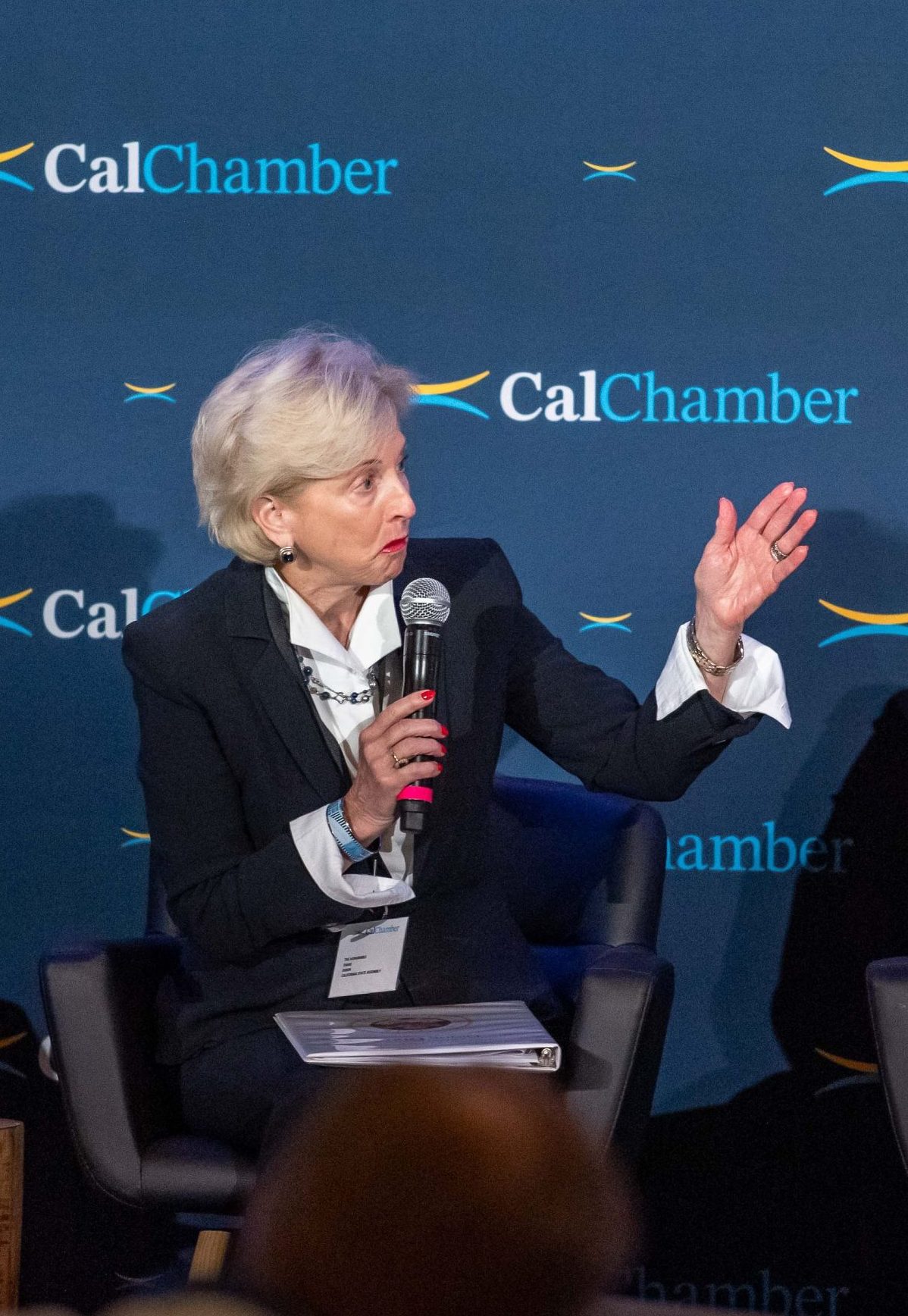 Liz Snow, CalChamber senior vice president, political affairs, gives the conference crowd a preview of the agenda.